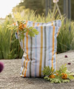 En explosion av färg dansar lekfullt över dina tygblöjor i mönstret av färgglada ränder. Orange, grönt, vitt och blått skapar tillsammans en ljus och energigivande atmosfär.