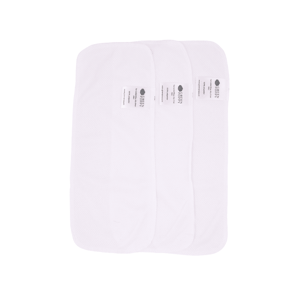 Green Poppys torrskikt är ett perfekt komplement att ha till våra PUL-skal med inlägg. Torrskiktet kan också läggas in i en vikblöja. Används med fördel nattetid när barnet har blöja under fler timmar!
